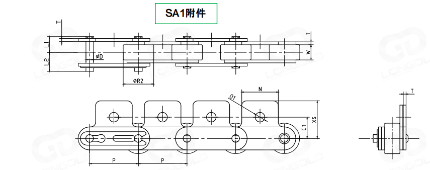 SS規(guī)格:滾子是超級(jí)工程塑料制,鏈板、銷軸等材質(zhì)為SUS304。