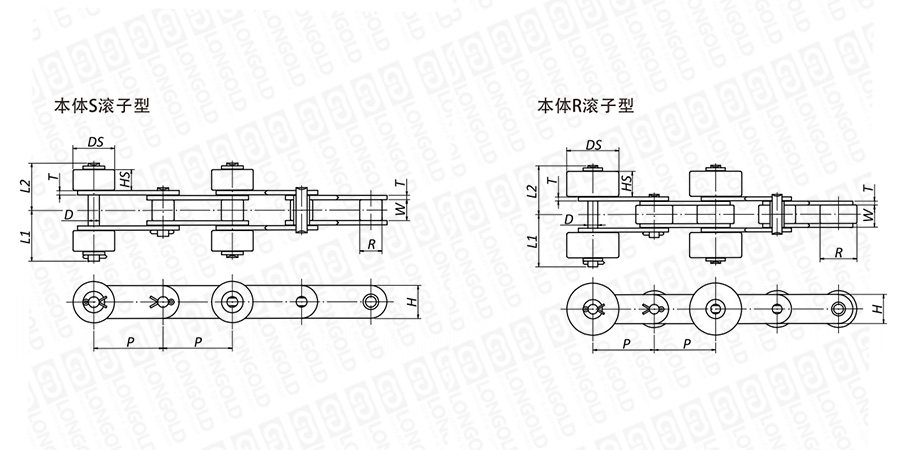 (2)鏈條本體滾子形式: S=小滾子  R=大滾子  RP=塑料大滾子