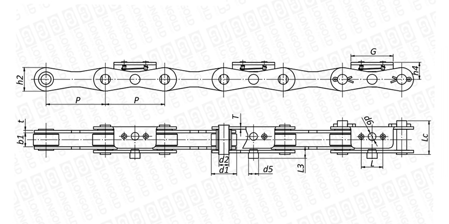 附件是為了將夾具安裝在鏈條上的零部件。可根據(jù)客戶要求設(shè)定安裝間隔。