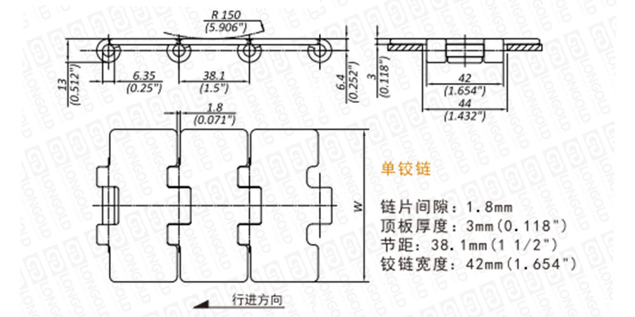 采用圓弧倒角,頂板上表面邊緣圓滑。傳送順暢、平滑,橫向和縱向間隙減小,更有利于產(chǎn)品運作。