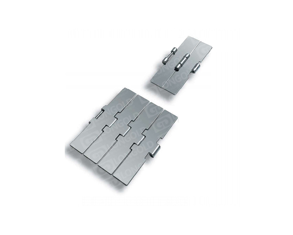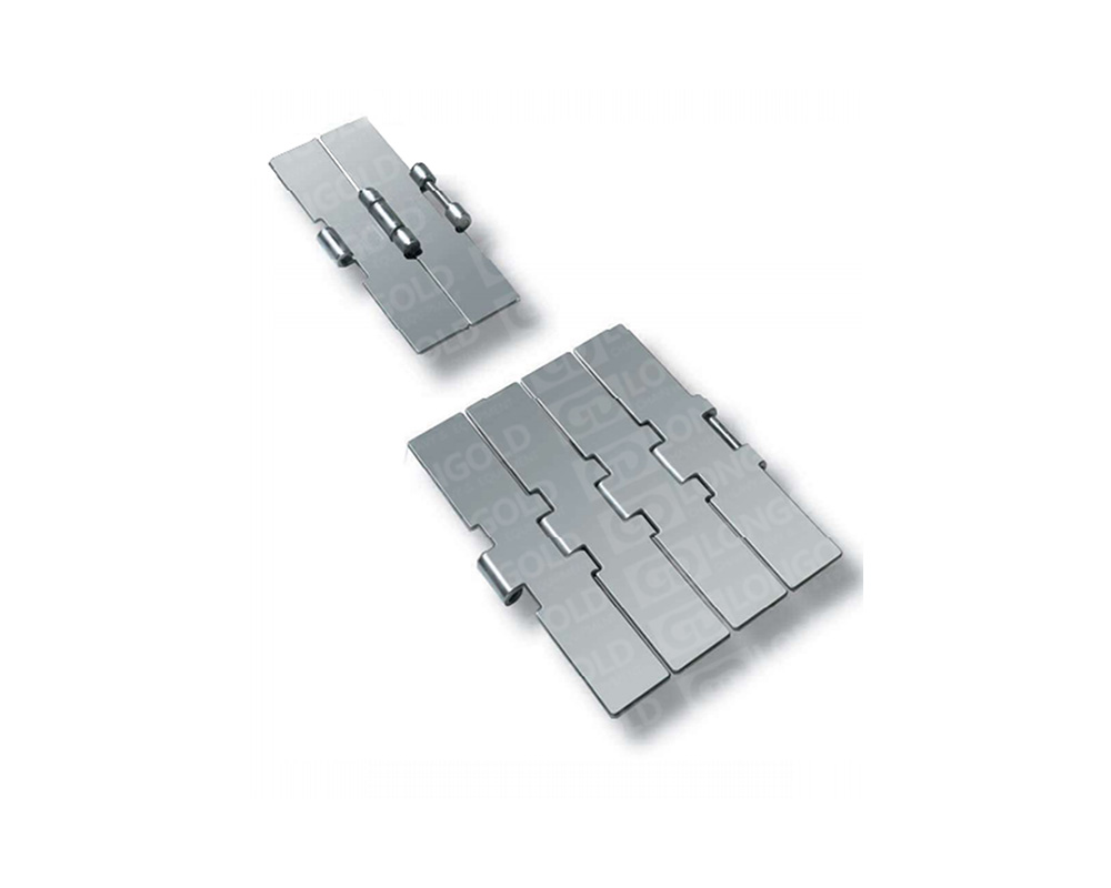 頂板鏈的鏈板通常比較寬大且厚實(shí),其形狀多為平板狀。M815系列直行鏈回旋半徑大小減少(75毫米)。鏈片間距為2.8毫米